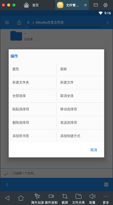 第三步,移动完成之后,点击模拟器下方的 文件共享 按钮,会弹出文件夹,这时候就可以用了这个文件了