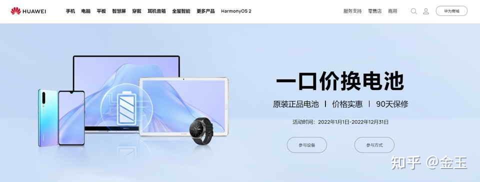 很多人可能会疑问,现在手机电池都是不可拆卸的,自己更换非常危险,如果去官方服务店更换可能费用会比较高,其实,现在很多国产品牌更换电池都比较方便且便宜,以华为为例,推出的“华为一口价换电池”活动,更换原装电池最低仅需 99 元,并且部分平板、手表、笔记本产品也支持一口价更换原装电池,可以说是性价比相当高的活动。
