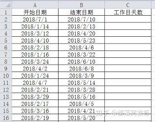 *1、 打开如下的表格,需要计算两个不同日期之间有多少个工作日;