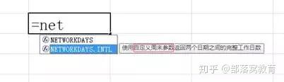 不用怕!在Excel2010版就有了一个升级版的工作日函数:NETWORKDAYS.INTL,函数有点长,估计能记住的人没多少人,这不要紧,只要记得是net开头的,在Excel中会有提示: