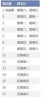 如果提供的17种休息日都不符合实际情况,还可以自己指定休息日,需要输入7位数字。第一位数字代表周一,最后一位代表周日,每个位置上只能写0和1,0代表上班,1代表休息。如果只有周二休息,自定义参数就是0100000。