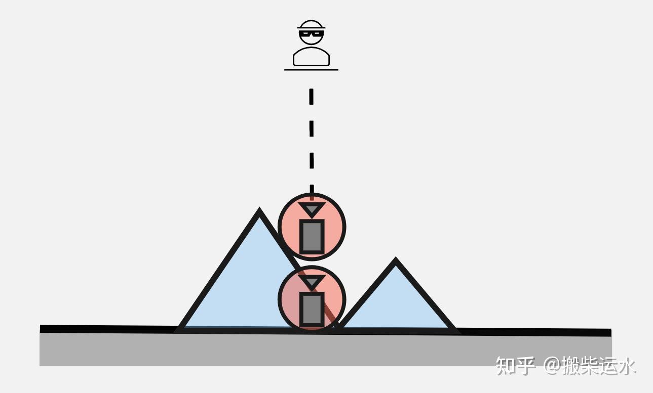 在 搬柴运水:3D游戏的镜头设计原理 一文中,我提到了第三人称视角中,当角色和相机之间存在遮挡物时,有遮挡拉近和遮挡剔除2种解决方法,所谓的遮挡拉近,就是用缩短相机和角色之间的距离的方法,将相机拽到障碍物的前方去。如下图所示: