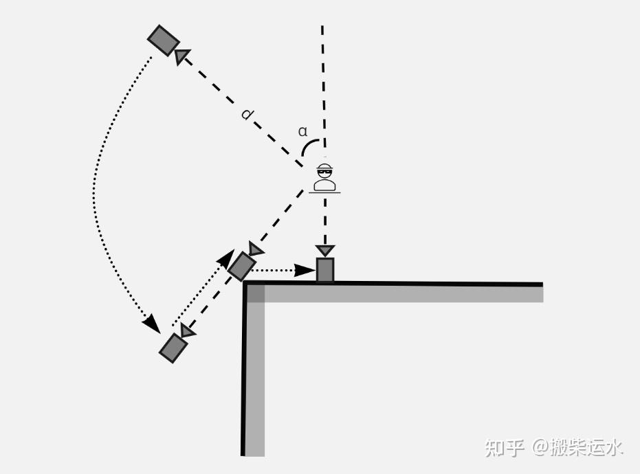 我们发现,如果角色处于一个直角建筑的前方,d和α的关系将会是下图的样子: