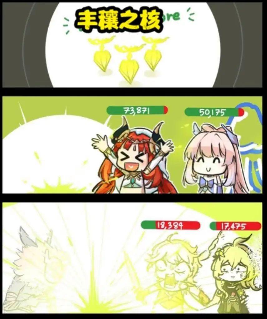 但是!不知道你有没有注意,这是单段核爆!而且可以非常稳定地打出蒸发,上一个能打核爆的角色是谁?还是1.0时代的优菈,CH已经很久都不敢出类似胡桃公子这种能打增幅反应的核爆了