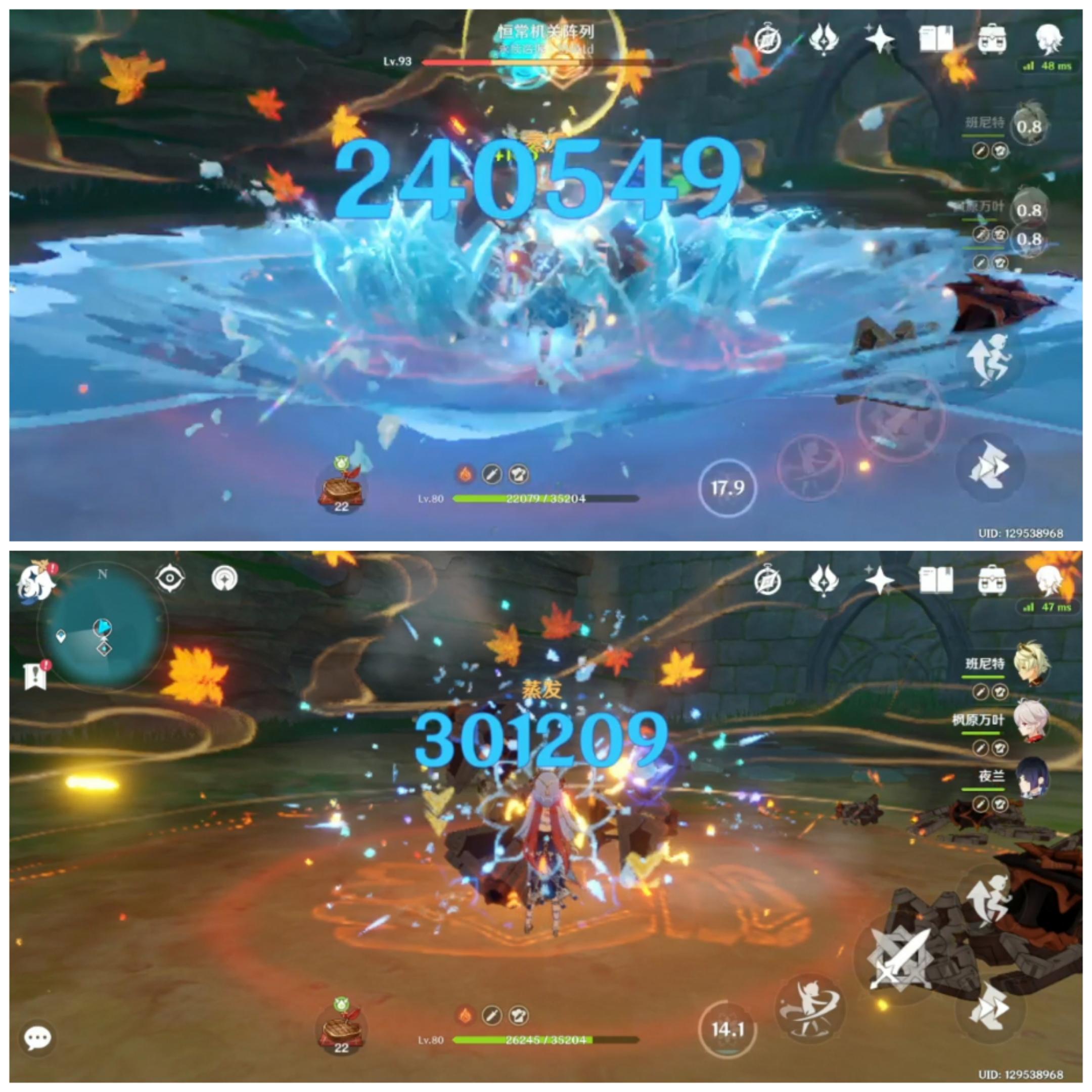 这个玩法目前偏娱乐,原因是夜兰妮露均不吃攻击力加成,班只是挂个火太大材小用了,不过妮露的Q这种稀有的两段核爆机制,就注定未来只要有个火系生命拐,她就能转速切核爆玩法,嘛,不过要等到火国也说不定,就当是小小地桃一下,作为妮露上限的补充,毕竟满命大佬200W核爆也打出来了