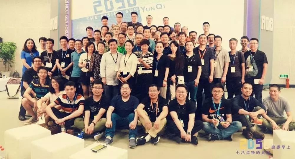 马云、王坚和工程师们的合影