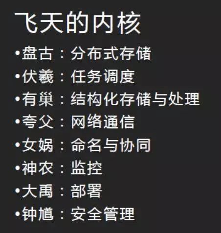刚才我说阿里云是“起名驱动型的公司”,你看看这帮疯子给飞天内部模块的命名,就知道他们心里在想什么了: