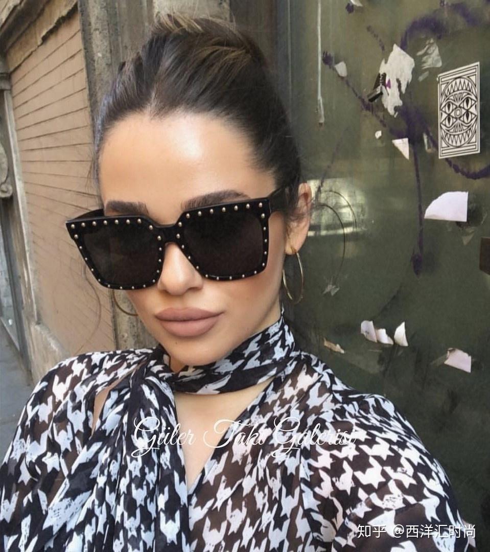 其实除了猫眼款,CELINE眼镜中的夸张方形款也是相当的热销,也能称得上是博主街拍、自拍上的常客了。
