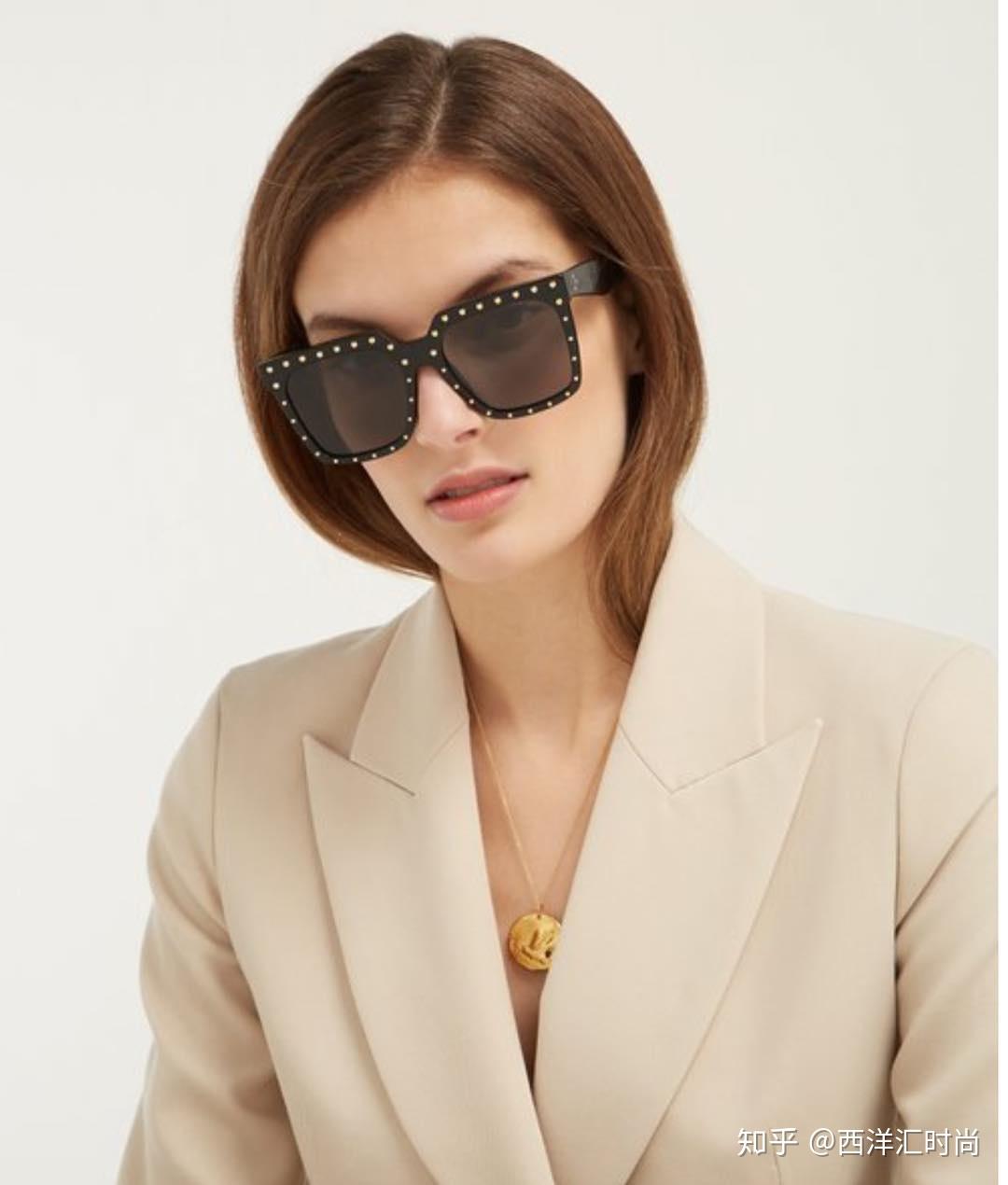 这款方形框架 CELINE眼镜,通过夸张的大镜面,结合铆钉饰边设计,能起到很好的修饰脸型的效果。