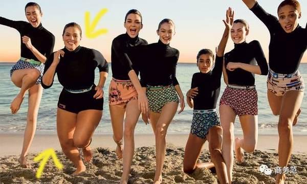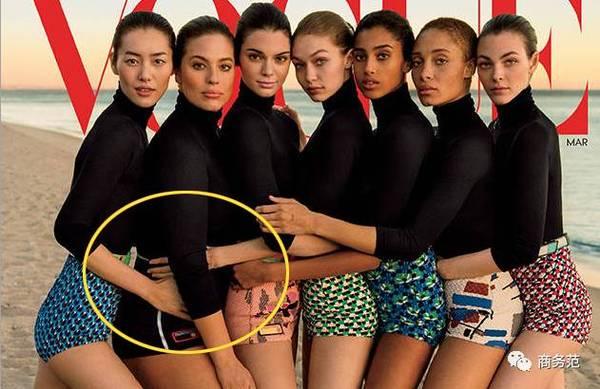 为什么呢,看这张拍摄“花絮”就知道了,原来是为了“隐藏”大码超模Ashley Graham,虽然封面修图师还是“没忍住”要P一P,但从Ashley这几年上大刊的频率来看,时尚界也是能够接受这种美的(~ ̄▽ ̄)~。