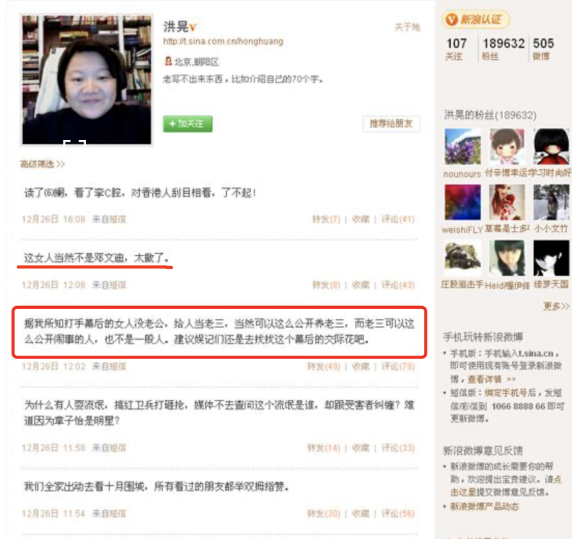 洪女士这番爆料直接让各位「网络福尔摩斯们」指明了方向,于是便有大神推测到这位幕后女人是赵女士。