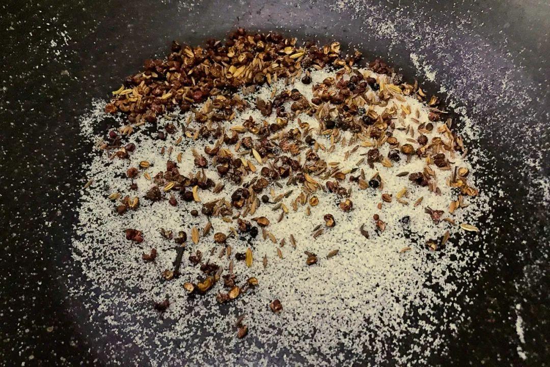 - 炒好的花椒建议都用上,但是盐可以不全用完,具体根据你的口味来。