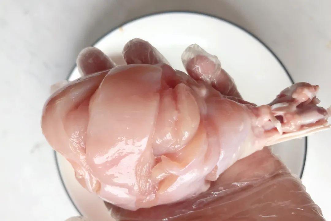 凉水浸泡,泡出血水,得到光溜溜的大鸡腿儿,白嫩嫩的让你忍不住想要拍打拍打~