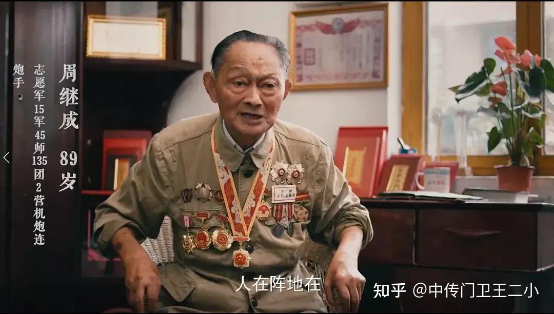 影片结尾滚动的字幕中,老兵们在左上角的小画框里再次出现,表达他们对战争的态度、和平的期望以及国家的祝福,语义在此开启电影体验的深度,在描述战争与缅怀烈士之余,以积极乐观的情绪审视战争过后的生活基调,他们的记忆和意愿,会由当下的年轻人延续。