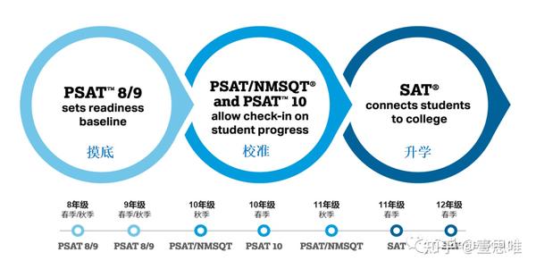 PSAT和SAT系列考试是对相同的能力和知识在不同年级阶段的测评,让学生、家长和老师能够用统一的标尺在不同年级阶段准确的掌握学习的进度和水平。