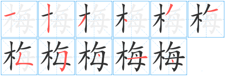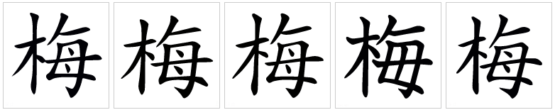 - 坆、某、栂、楳、槑、梅、𣏁、𣒫、𤯏、𣐥