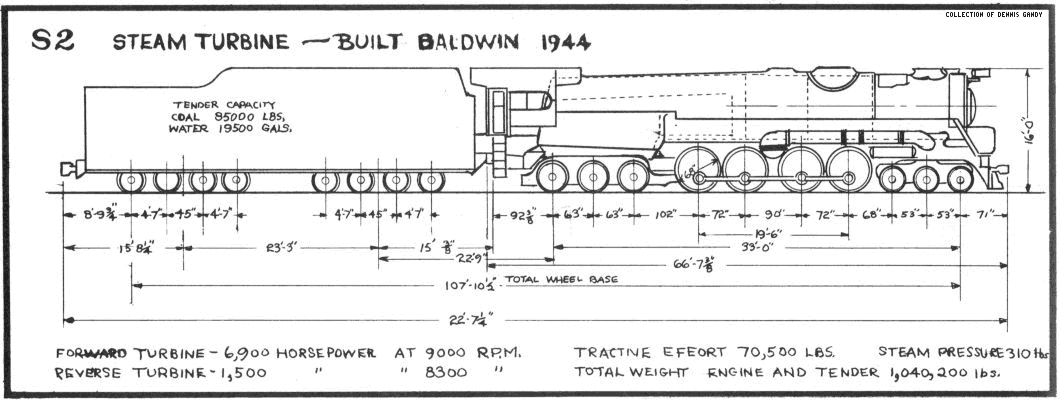 “嗖嗖嗖”S2-6200号蒸汽轮机机车 是BLW和WEC合作设计并于1944年9月交付PRR,旨在通过采用已在船舶工业广泛应用的蒸汽轮机技术,来延长蒸汽机车的主导地位。S2-6200号机车是唯一一台使用6-8-6轮式布置的蒸汽机车——即一组6个导轮、一组8个动轮和一组6个从轮,同时也是有史以来最大、最重、运行速度最快的直驱式蒸汽轮机机车。