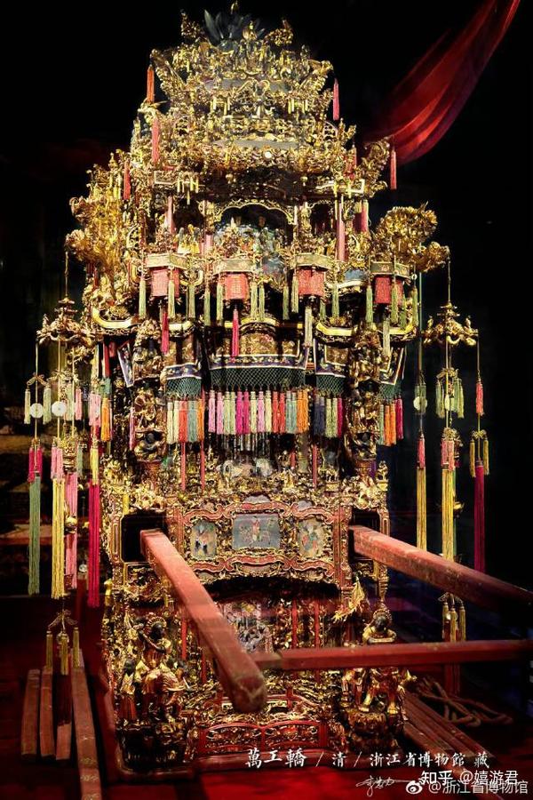 还有一件是清末明初的 宁波式花轿。 因为制造的时候耗费了一万多个工时,所以也被称为“万工轿”。毫不夸张的说,它是世界上现存最豪华的花轿了