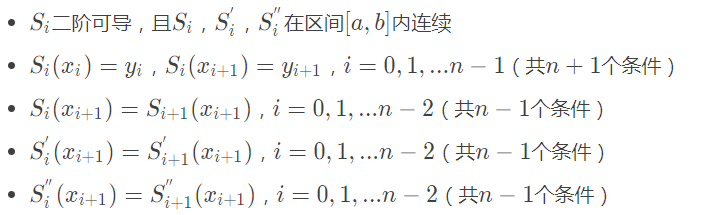4n个条件有了,就可以确定每个区间上的三次多项式。