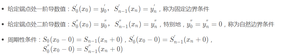 以上共4n−2个条件,还差2个条件,由如下三种边界条件确定: