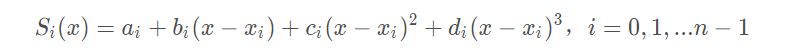 给定n+1个点,a=x_0<x_1<...<x_n=b,以及他们的函数值f(x_i),i=0,1,2,...n上,确定一个三次多项式: