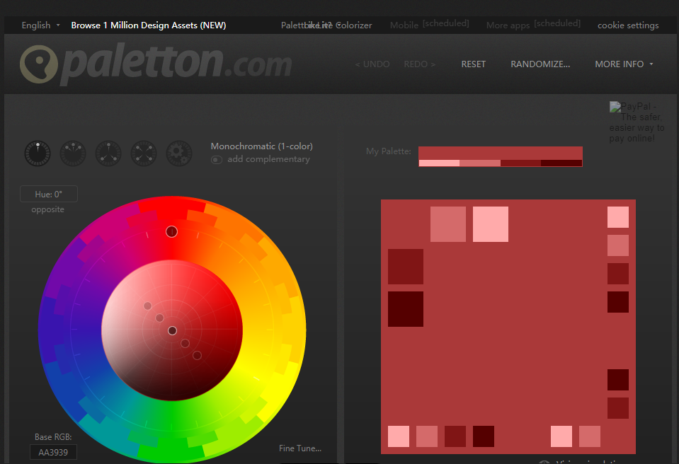 是⼀个在线的色环配色工具,我们可以根据需要选择单色、相近色、 对比色 等规则来查看配色,也可以实时查看其在网页中的搭配效果。