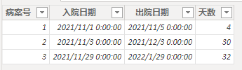 添加列,用出院日期-入院日期,并将数据类型转成整型。