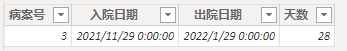 当然,这里有个业务问题,以筛选2022年为例,3号病人1月29日出院,那么1月29日算不算一天,因为我没住过院不懂这个,所以说业务问题我不解决,如果需要计算当天,您只需要在我后面讲的公式中+1即可