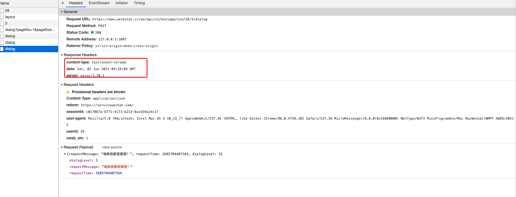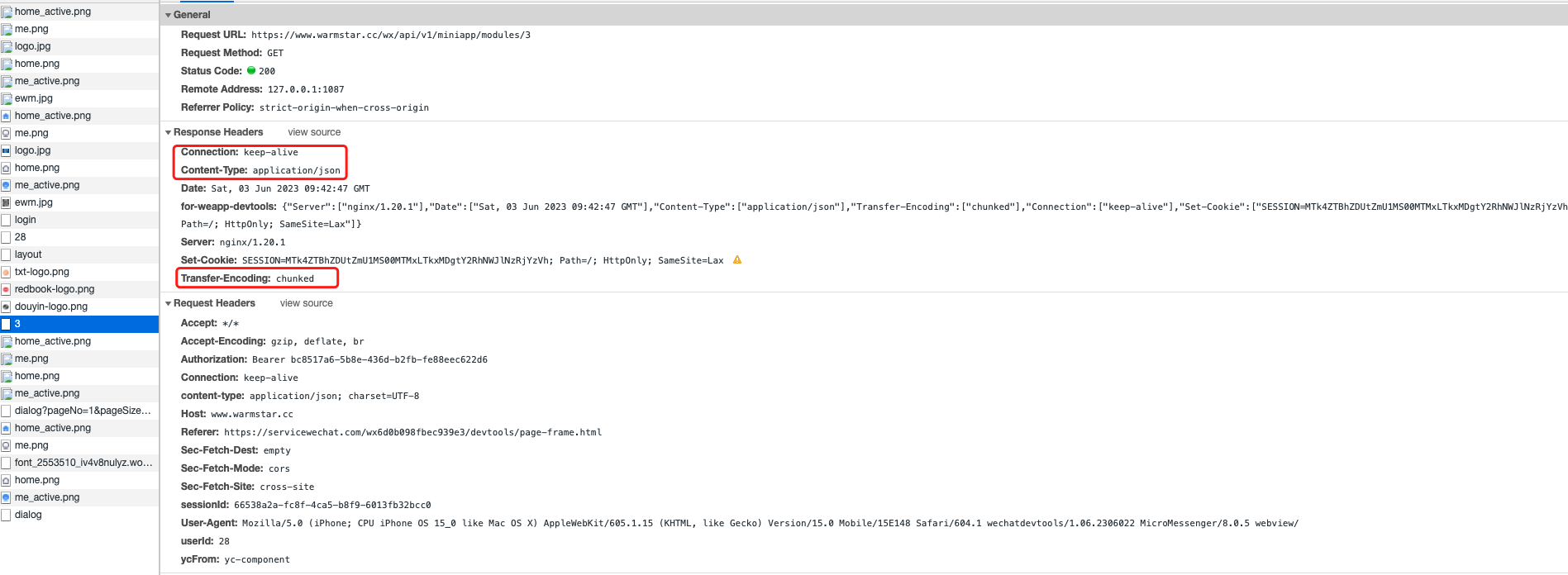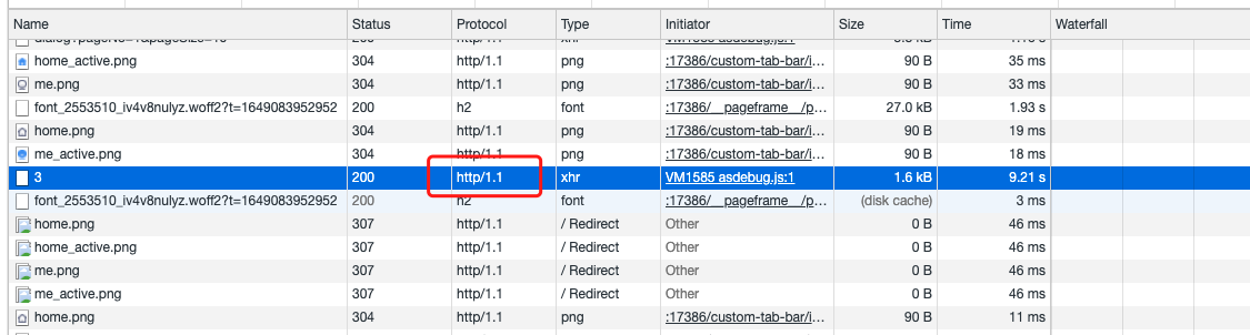 在PC端的Debug模式下抓取同一个请求如下:
