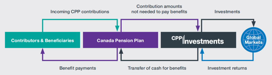 经过这次变更,加拿大养老金计划的运作方式发生了很大的变化:加拿大雇员及其雇主共同为加拿大养老金计划(CPP)供款,供款首先用于支付CPP福利,暂时不需要支付的供款交由CPP Investments用于创建全球多元化投资组合,以帮助当代和子孙后代维持养老金的持续积累和支付(详见图一),而CPPIB则是CPP Investments的管理人。