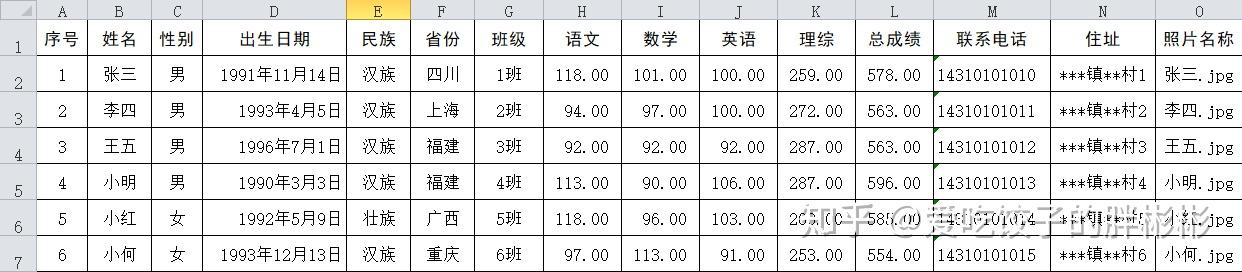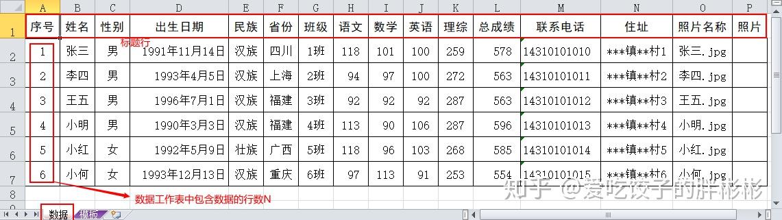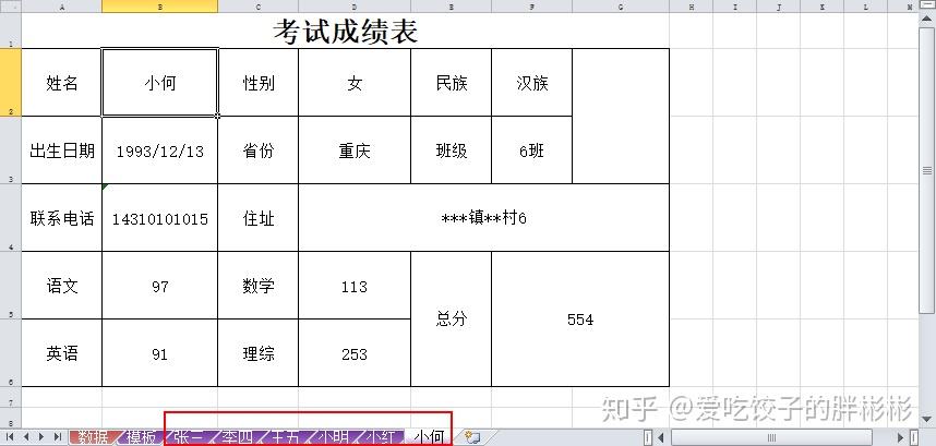 那么,聪明的小伙伴可能已经发现在Word中可以用「邮件合并」功能批量制作文档,那Excel怎么办呢?如果现在需要把一个有200行数据的工作表中的每一行数据都按照某一种模板生成一个新的工作表。比如要在Excel中为下面这个学生成绩表中的每个学生按统一的模板制作考试成绩表。