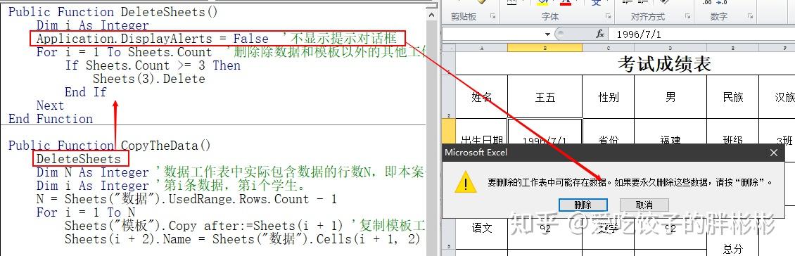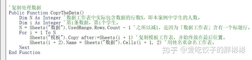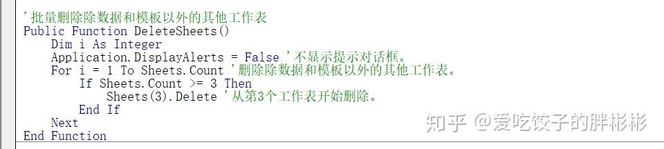 为便于调试,我们增加了一个函数「 DeleteSheets 」用于批量删除除「 数据工作表 」和「 模板工作表 」以外的工作表,并在「 CopyTheData 」中进行调用。