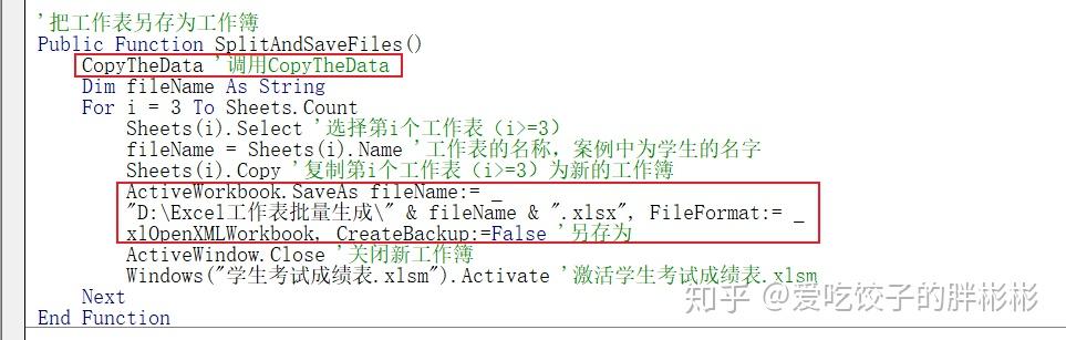 这里可以再添加一个函数「 SplitAndSaveFiles 」,并调用「 CopyTheData 」。
