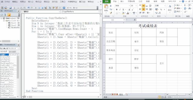 - 循环复制「 数据工作表 」中的内容到新复制的「 模板工作表 」;