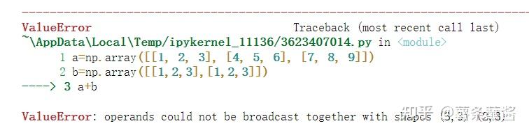a的shape是(3,3),b的shape是(2,3)。根据第三条,不能计算。
