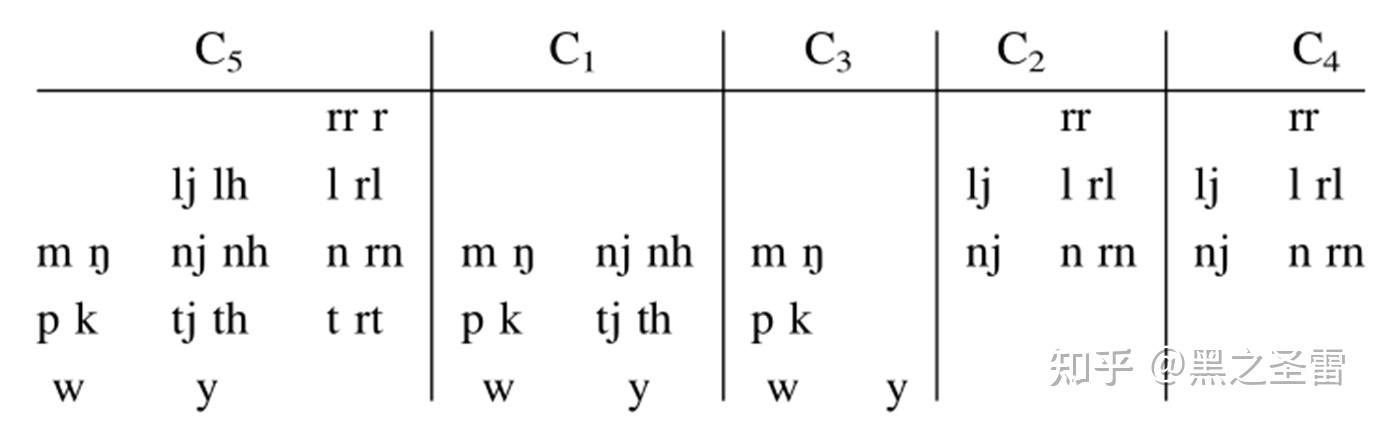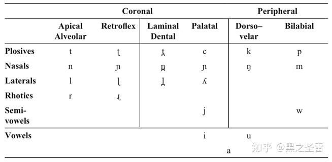 最典型的澳洲语言音系如下所示: