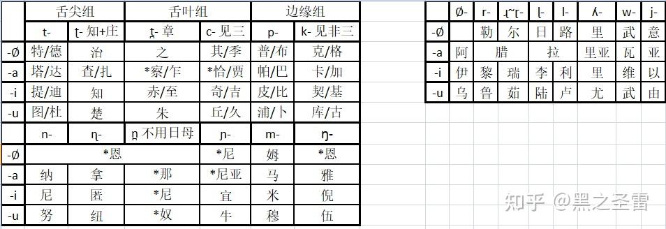 1.音系(与通用音译表)