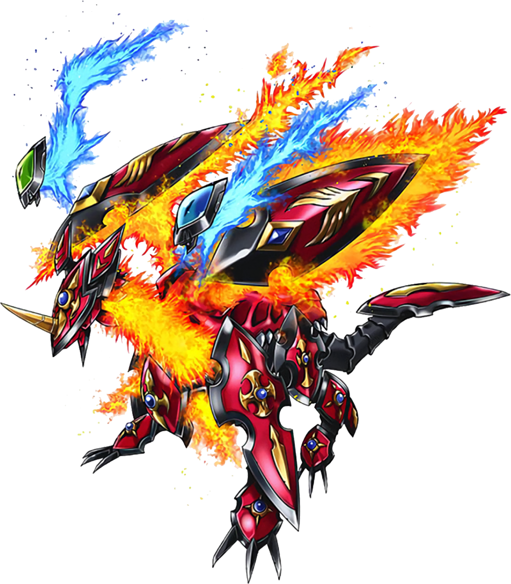 超越种超越传说十斗士的力量,炎之能力的超越种数码兽。体内寄宿有流淌于大地(盖亚)的九龙脉的力量,预言若能驾驭九龙之力,就能发挥出无法估量的能力,甚至连大地(盖亚)也能支配。为驾驭这股力量,需要手持传说中封印龙魂的「龙魂剑」。必杀技是从「龙魂剑」中释放出火焰燃至白光的箭矢「炎龙击」,以及释放出寄宿于大地的八龙脉,自己化身为最后一条龙的「九头龙炎阵」