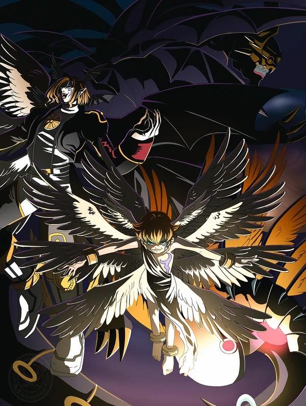 当空前的危机造访数码世界时,不相容的天女兽和女恶魔携手合步进化而来。统领从连接大门其他数码世界被召集而来的两族势力应付绝境。同时统领敌对立场的天使、堕天使族是 “异世界军师”独有的资质。必杀:放出光之箭矢讨伐消灭邪恶之人的「神圣希望」,抓握对手的数码核捏碎并删除的「黑暗绝望」,双臂的光与暗的能量融合制造出门,将敌人葬送到异次元彼岸的「混沌降阶」