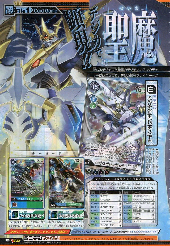 崩溃的魔龙幻化为光属性病毒种圣骑士,既是病毒属性又为网络守护神,正是矛盾的象征性存在,一旦平衡崩溃也会变为危险的存在。注重骑士道,对主君尽忠义之士。身着99.9%高纯度「时之数码合金」精致打造的圣铠,必杀技是用圣枪「格拉墨」打出强烈的一击「皇家枪击」(Royal Saber)以及用左臂的圣盾「埃癸斯」放出净化一切的光束「极乐净土」