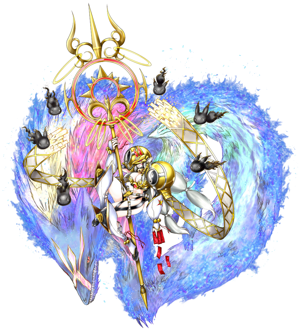 以降灵术和阴阳术为首流传于东方世界所有秘术达到巅峰的专家。可以通过数码世界的自然与调和,将草木岩石等变换为花和狐模样的式神供自己差使。擅长用管狐和式神进行索敌、谍报活动,通过活用得到的情报混入黑暗中讨伐敌人的黑暗看守。全新必杀技是将天地万物变换成无数式神,以花之风暴包裹敌人让其消灭的「此花战姬万象」,金色光环、球形屏障、樱花、闪电球等一切组合而成的曼荼罗魔法阵「金刚界曼荼罗」,以及通过与掌管四大元素的管狐合体召唤一尊巨大狐神的「宇迦之御魂」。