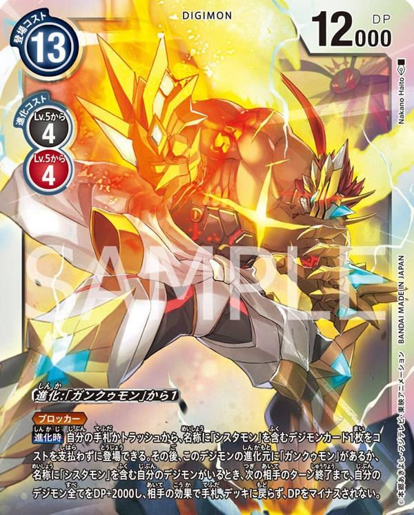 「不可能存在」的数码兽代码名,在数码世界的「中心原理(Central Dogma)」里是绝对不可能的特异(漏洞,Bug)。因为是极其不稳定的存在,所以短命,推测是因为数码世界的管理系统放出的排除故障的程序所导致。分别保持着合步进化前两数码兽的数码核,以非常不完全的状态维持着自己的形态。必杀技是用「番长臂」上装备的「BAN-TYO刃」施展无敌的一刀两断「霸王两断剑」,以及从「暗龙臂」上装备的「千兆刺杀炮(Giga Stick Cannon)」中打出自身数码细胞的「黑暗日珥」。