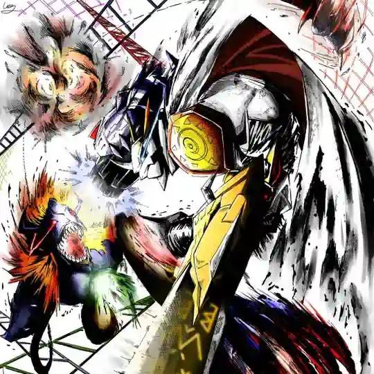 寄宿在「命运的数码精神」隐藏的力量被x抗体所激发出来,平时可以发挥究极体级别的力量。生成「武装臂」,远距离用衰减率少的「疾速破坏炮」连射,中近距离更换武装臂连射「激光加特林武装」。追加推力功能,高速扑进对方怀里用爪斩击也成为可能。最大必杀是将武装臂全部射出,远程操作追击,射出10亿发子弹的「十亿弹丸」。