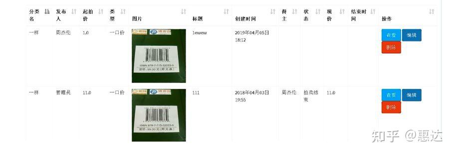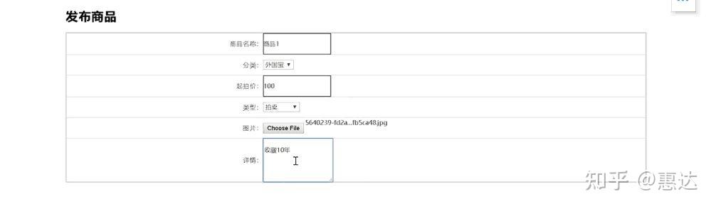 拍卖者登录系统可以对发布商品信息进行添加、查看等操作。发布商品果图如图5-8所示。