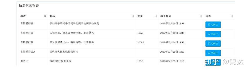 拍卖者登录系统可以对我的拍卖信息进行添加、查看等操作。我的拍卖效果图如图5-5所示。
