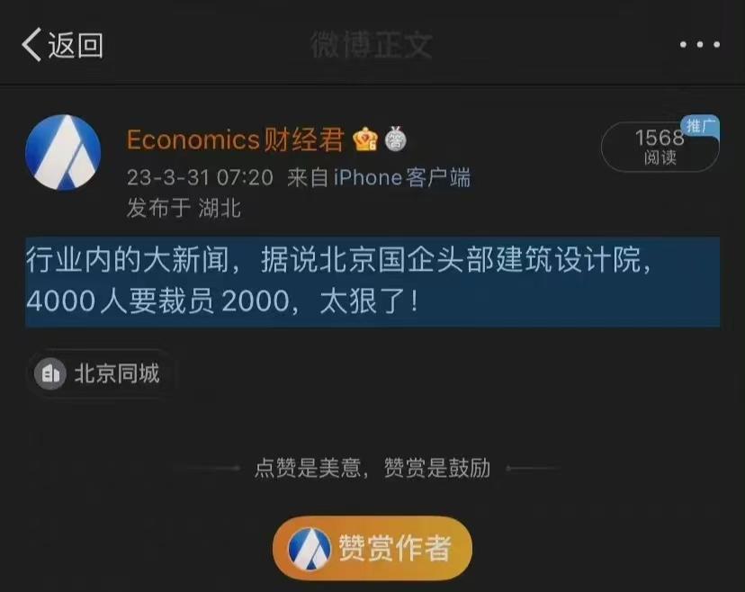 近日有网友爆料,北京某国企设计院迎来了大裁员,其中一名任职多年的高龄员工赫然就在裁员名单内。