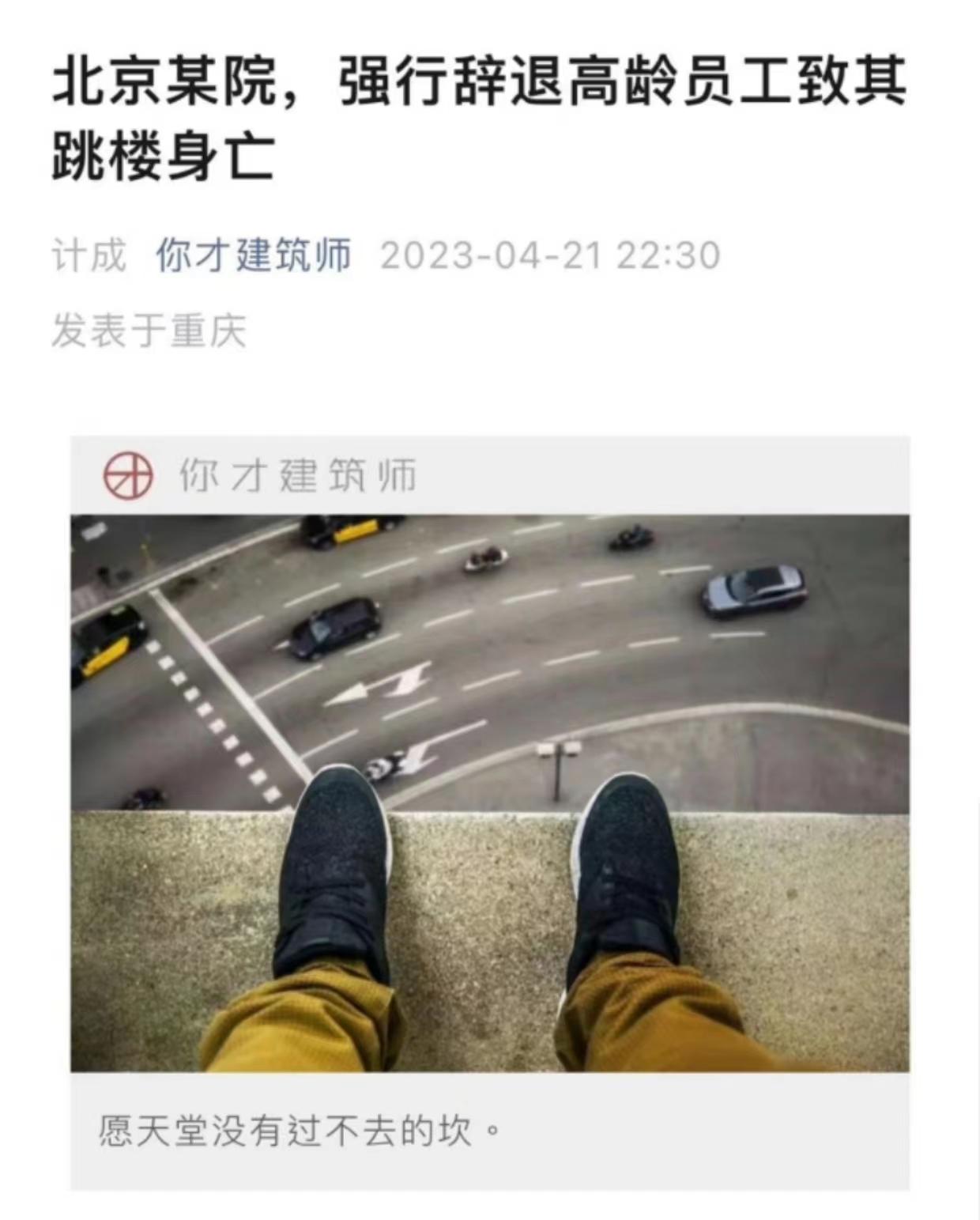 网传北京某国企大裁员,强行辞退高龄员工致其跳楼身亡
