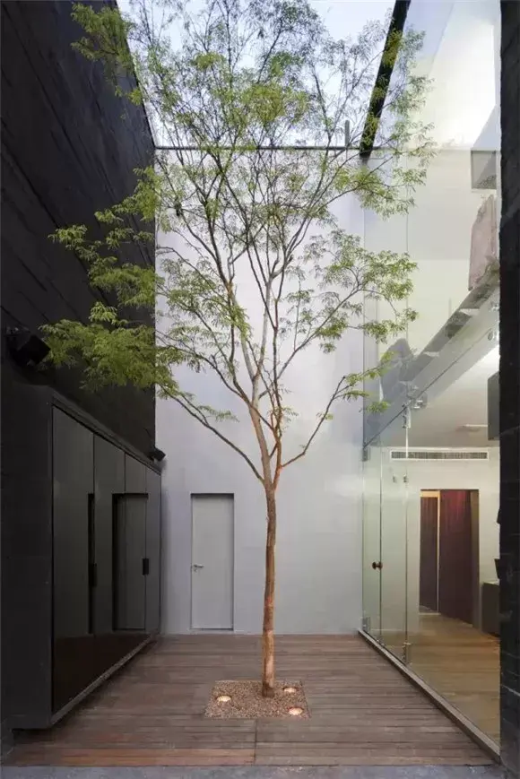 现代别墅,有院落的宅院就是非常奢侈的,因此,要想用树木美化环境,就要适当利用天井种树,不但可以增加美感,净化空气,而且可以起到画龙点睛,回归自然的朴素情感的作用,网上有不少案例,可以走为参考。