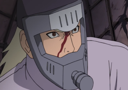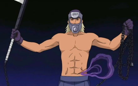 半藏利用通灵之术召唤出能吐出毒雾的山椒鱼,但被三船用居合斩击败逃走。在三船再度交手时了解到自己辜负先前的信念。为了找回尚未完全失去的信念,他在败给三船后,便告诉三船阻止他不死之身的方法,由于他的面罩先前已经被砍坏,就在违背符令的情况下切腹,等药师兜察觉欲完全控制半藏时,腹中喷涌出的毒气已经让半藏动弹不得,忍者联军趁机进行封印,三船与半藏之战正式落幕,三船知道半藏已找回失去的信念,并要为半藏建一个墓