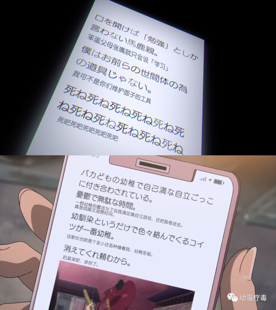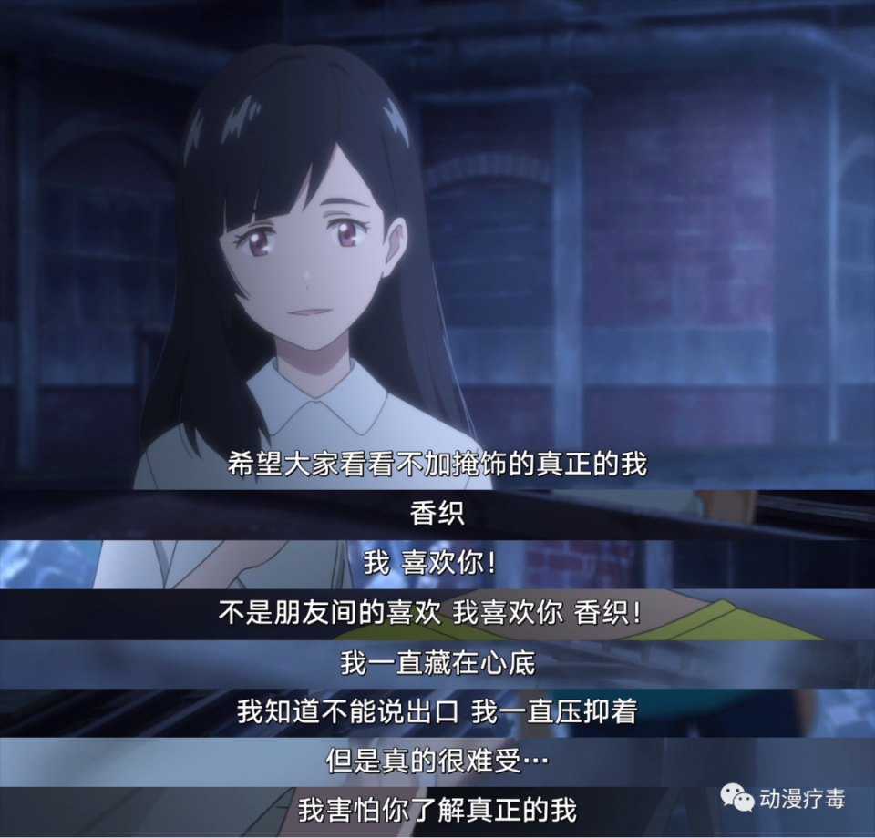其实我对于演员来给动画电影配音这件事情比较反感的。守是由北村匠海配音,绫由芳根京子配音,男女主角皆是日本演艺圈的演员,北村匠海曾出演真人版电影《恋爱禁止的世界》、《我想吃掉你的胰脏》;芳根京子更是出演过真人版电影《累》(双女主电影,另一个女主是土屋太凤)、《心灵想要大声呼喊》。明明不是专业的声优,却都拿到了主角的台本,说实话这两个演员我是都喜欢的,然而他俩在我心中并不是声音派的。所以说动画电影为什么要找演员配音啊,声优明明都那么难接到工作了……